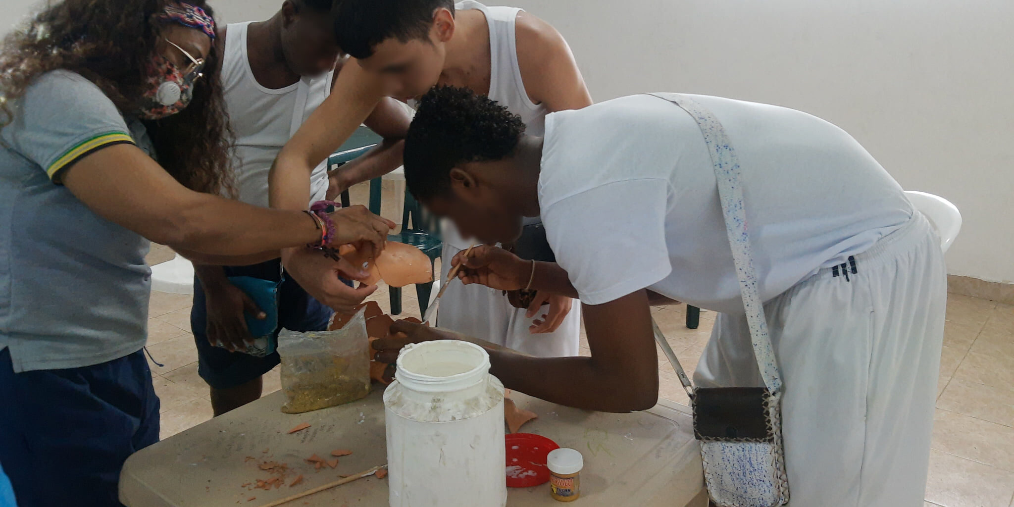 Así se denominó el taller que recibieron los beneficiarios del Centro de Formación Juvenil Buen Pastor donde tuvieron la oportunidad de reconocer y aprender a identificar sus emociones y sentimientos, pero también los cambios fisiológicos que cada una de ellas produce en su cuerpo. A través de una emotiva sesión impartida por la Especialista de Área, María Fernanda Mosquera, en tres fases los beneficiarios lograron plasmar en papel las emociones principales que vive el ser humano, luego tuvieron la oportunidad de dibujar y pintar con amor sobre una alcancía objetos con los que identificaban cada uno de estos sentimientos y finalmente en un momento sorpresa de la sesión se quebró la pieza de barro para que en la tercera y última parte de la actividad los adolescentes y jóvenes la repararan con sus propias manos utilizando colbon, vinilo y escarcha dorada asemejándose al oro.